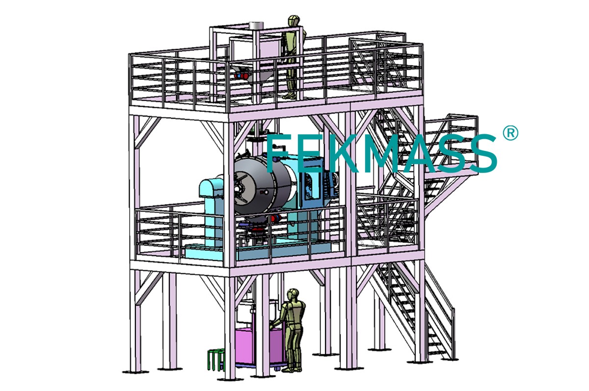 Industrial powder mixer mixing line, assemblied double movement mixer, mix different industrial dry powders, with very-high efficiency, with very-high mixing uniformity.